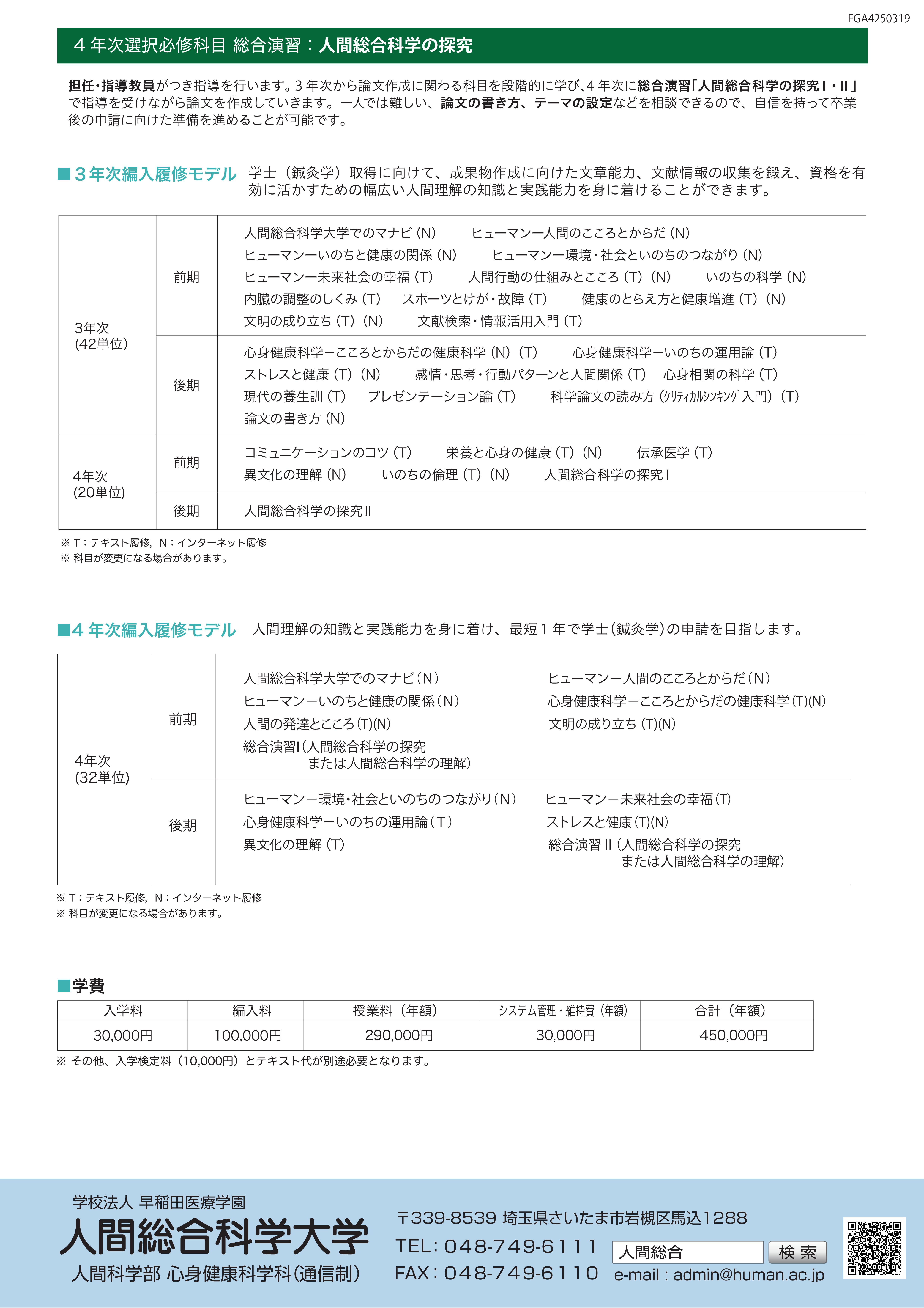 人間科学でなく鍼灸学の学士を目指す方はこちらをご確認ください。