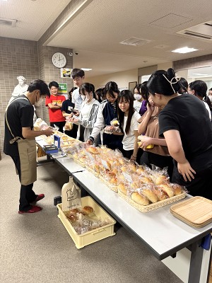 午前の授業を終えた学生たちは、お腹を空かせて待ちきれない様子でした。キラキラした目でパンを選ぶ学生たちの姿が印象的で、用意されたパンはあっという間に完売となりました。