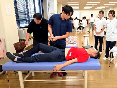 学生も実践的な施術体験に興味津々で、予定の時間が過ぎても先生方に質問責め!