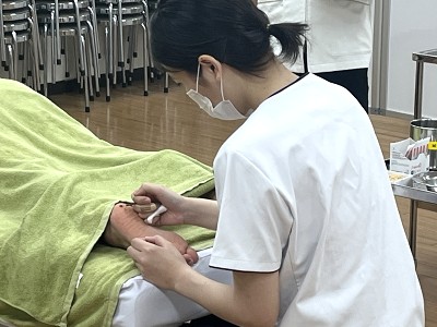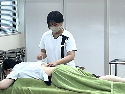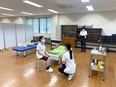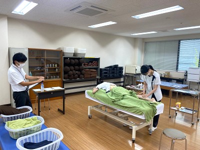 「はりきゅう学外実技評価審査」が実施されました。3年生が今までの実技練習で身につけた、はり・きゅう施術の技能を他校の先生方に評価いただく審査です。