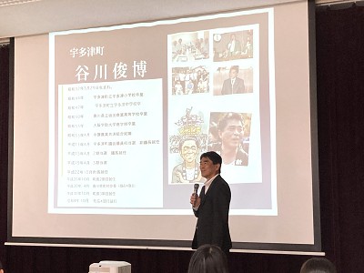 谷川町長から、宇多津町がめざす「日本で一番住みやすい町」に向けた取り組みについて、町の現状や特色ある施策をご紹介いただきました。