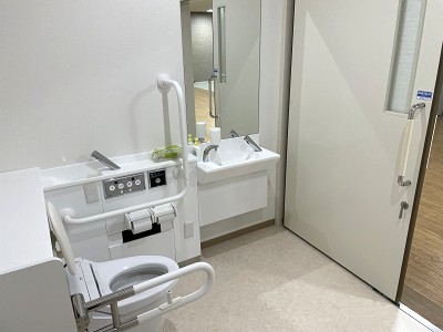 このトイレは、車椅子利用者や介助が必要な方など、さまざまなニーズに対応できる設備を備えており、誰もが安心して利用できる空間となっています。 今後も本校では、施設のバリアフリー化をはじめ、すべての学生が不安なく学びに集中できる環境づくりを進めてまいります。