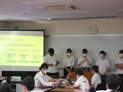 体験実習後は、グループワークを行い、ポリファーマシー※や服薬アドヒアランス※の向上、災害時の薬の確保と支援体制について発表を行いました。