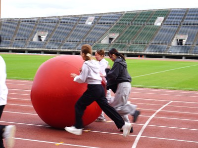 休憩をはさんで、大玉転がし、借り物競争に熱中し、最終競技はクラス対抗リレーです!