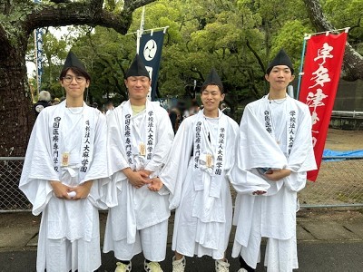 今年も本校から教職員・学生の有志29名が巫女と神輿担ぎ手となり参加しました。