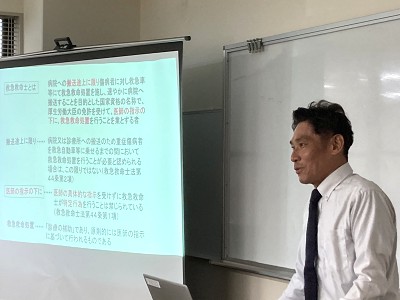 前半は、「消防士の職務や地域における役割」、「高齢者の骨折」について講義いただきました。