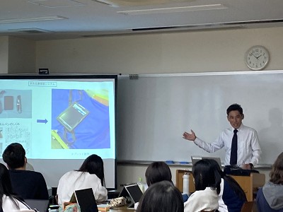 看護学科4年生を対象とした「くらしの中の医療」の講義の一環として、丸亀市消防本部救急救命士の髙田氏をお招きし、「家庭の日常に潜む危険と初期対応」をテーマに、消防士の業務や地域での役割についてお話しいただきました。