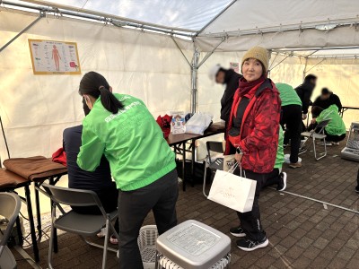 四国医療専門学校(鍼灸マッサージ学科・鍼灸学科)では、毎年「はりコンディショニングブース」を出展し、出走前のランナーの皆さまをサポートしています。
