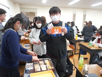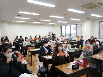 教員からは合格を願い、学生一人ひとりにお守り、鉛筆、勝負必勝せんべい、必勝合格カイロを手渡しました。これらには、「これまでの学びを信じて試験に臨んでほしい」「自分の力を最後まで出し切ってほしい」という教員一同の思いが込められています。