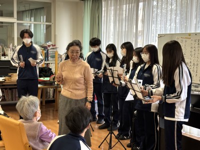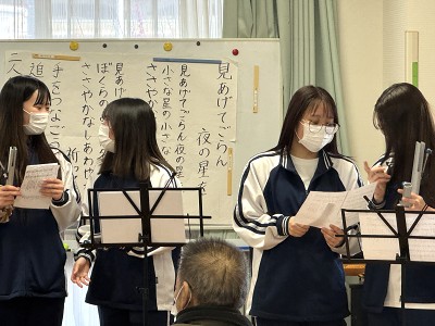 2月13日、看護学生の2年生が、音楽療法の講義として「デイサービスセンター 歩・いっぽ」を訪問しました。