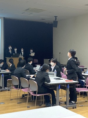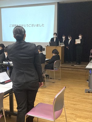 2月13日、看護学科3年生は、「看護研究Ⅱ」の授業の一環で、研究の基礎を学ぶために日常の中にある看護に関する疑問や実習に関連したことをグループで話し合い、研究の計画書を作成しました。研究の計画書を基にアンケート調査を実施し、データ収集・分析・解析して結果を導くことにより疑問を考察しました。その成果を発表し共有することで、量的研究の手法を学びました。