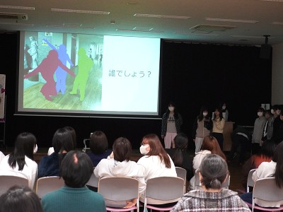 2年生はイントロクイズ、3年生は教員をモデルにした影あてクイズを行ないました。
