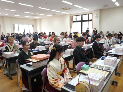 代表の学生達より、これまでの感謝の気持ちを込めたお礼の品が手渡され、会場は温かい拍手と笑顔に包まれました。