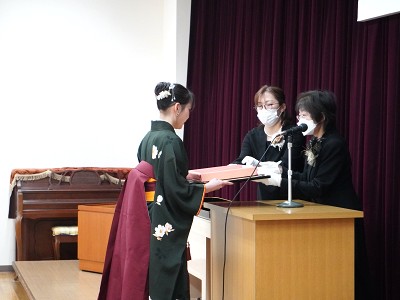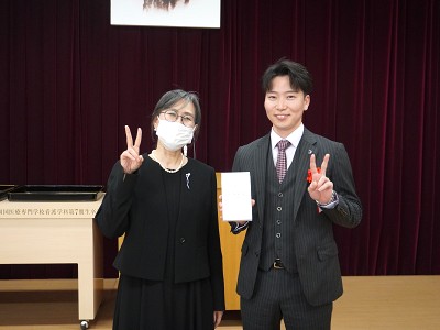 卒業式では代表者のみの表彰でしたが、学科のつどいでは、受賞者一人ひとりに、副学校長より表彰状を手渡しました。会場からは温かい拍手が送られ、学生たちの努力を皆で称えました。