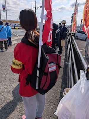 AED隊の活動についている間は緊張しながらランナーを見守り、走っている方々の状況を観察し、要請があったらすぐその場所まで駆けつけて活動しました。