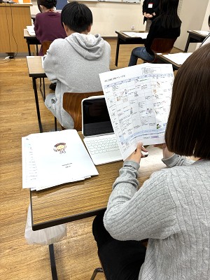 本学科ではICTを活用した教育を行なっており、iPadを使用して学習を行っています。入学時教育では、電子テキストのダウンロード方法や活用法、クラウドドライブの操作方法などについて、副担任から説明がありました。