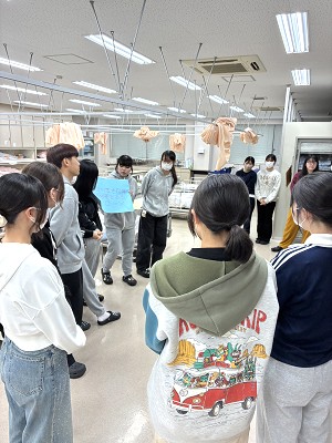 歓迎会後半では、4年生案内のもと「看護学科ツアー」で学内の各教室を周り、それぞれの教室で待つ2,3年生から教室の説明を受け、クイズを楽しみました。
