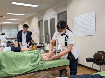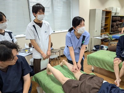 東洋医学の基本である経絡と経穴を体系的に学び、鍼と灸の基本的な技術を習得することを目的に授業を行っています。