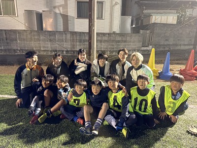 サッカーをはじめとするスポーツでは、動きだけではなく、思考能力も大切になってきます!今回のトレーニングでは、サッカーボールだけではなく、味方や相手、空間、周囲の状況を考えながらの動き方を提供できたのではないでしょうか?介入後のトレーニングやゲームにも参加させていただき、子ども達の上手なテクニックにもビックリ!!最後にコーチからもアドバイスをいただき、子ども達に伝わったことと伝わらなかったこと、楽しむことと引き締めることのメリハリのつけ方、言葉の選び方や褒め方など、とても良い経験になりました(^^)v