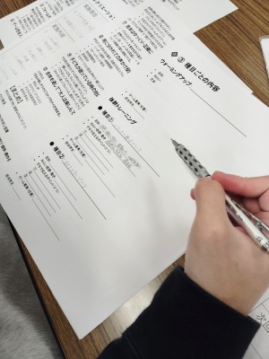 当日までに担当教員からのアドバイスを受けながら、動きを得意とする理学療法士の視点と思考を得意とする作業療法士の視点を組み合わせたトレーニングメニューを2つ考えました。子ども達はみんな一生懸命、かつ楽しそうに取り組んでくれ、しっかりと計画してきた成果もあり、学生達も嬉しそう!(^^)!