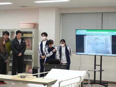 今回は、看護学科2年生の「『連携と協働』の演習Ⅱ」について紹介します。この科目はⅠ~Ⅳに区分されており、1年生から4年生の異学年交流、理学療法学科・作業療法学科との異学科交流により学習を深めていきます。