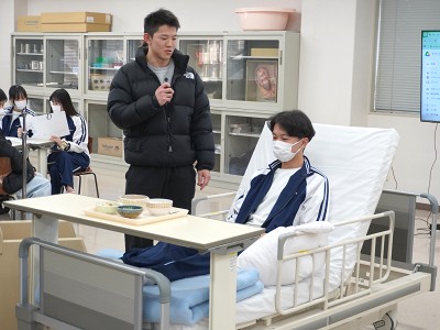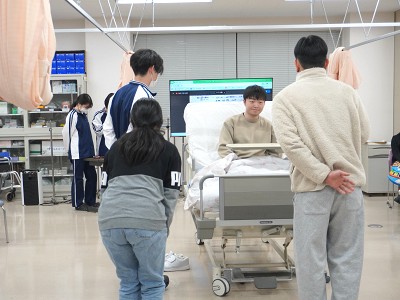 この日は看護学科の校舎に理学療法学科・作業療法学科の2年生が集まり、脳梗塞患者の事例をもとに、